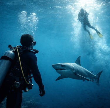 Years ago, I was scuba diving in the Caribbean with a dive buddy. Visibility was decent, the dive was calm—and then we found ourselves very close to a shark.